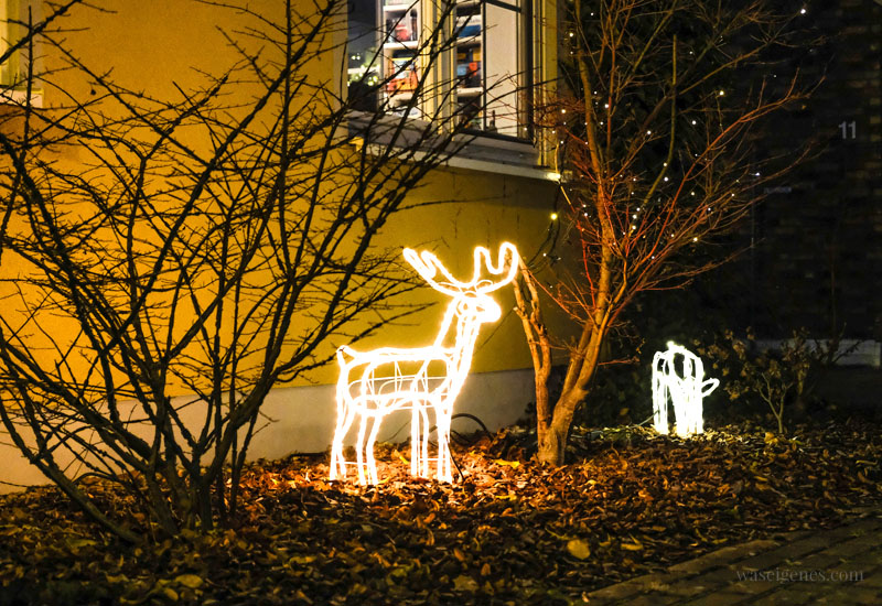 Egal, ob ich morgens früh mit Mollie durch den Wald streife und diese besondere Dezemberluft einatme, die Stille genieße und den grauen Himmel sehe – oder, ob ich mit ihr abends noch eine Runde durch’s Dorf laufe und gelbe und bunte Lichter in den Fenstern oder Vorgärten sehe.