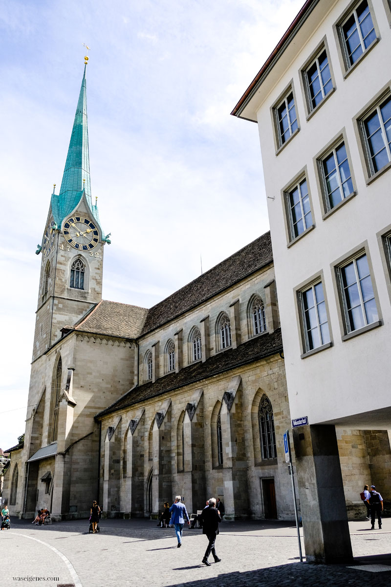 Wir hatten ja diese Stadtführung gebucht. Die Führerin – sehr nett und unterhaltsam – gab mir bei der Verabschiedung noch den Tipp, dass wir unbedingt noch den Kreuzgang des Grossmünsters anschauen sollten.