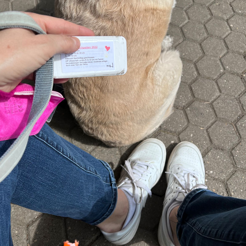 Mit einem kranken Familienmitglied muss ich dann doch zum Arzt. Kein Corona, nein Magen Darm. Mollie und ich warten mit einem Pieper draußen vor der Praxis. Wir dürfen zwar jetzt wieder rein, aber draußen fühle ich mich wohler. Nach zwei Spritzen und einem Tag, geht es unserem Hundemädchen wieder gut.