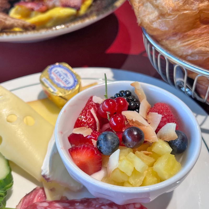 Wie sich das gehört, sind die roten Früchte auf dem Vormarsch! Es gab ein tolles Dessert mit Rhabarber – ein Rhabarber Cheesecake Dessert – so lecker und cremig und crunchy.