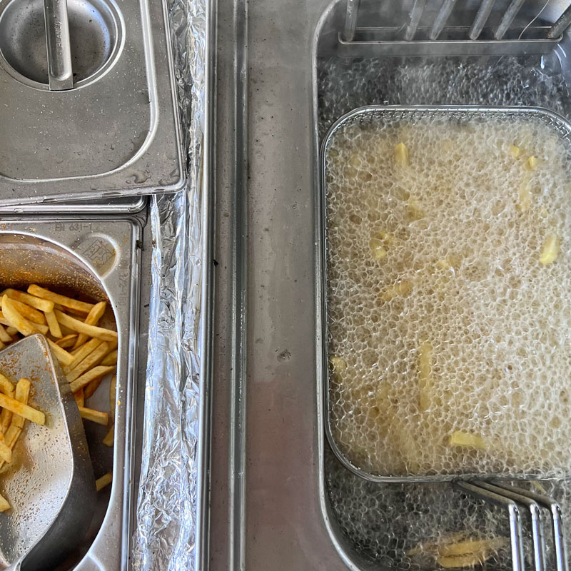 Seht Ihr den Grillwagen da hinten rechts. Da stehe ich und koche Pommes. Scheiß Job. Einerseits. Alles ist fettig. Andererseits liebe ich sowas ja. Kunden bewirten, ein Schwätzchen halten, möchten Sie Mayo oder lieber Ketchup? Eine Wurst dazu? Kein Problem. Moment bitte.