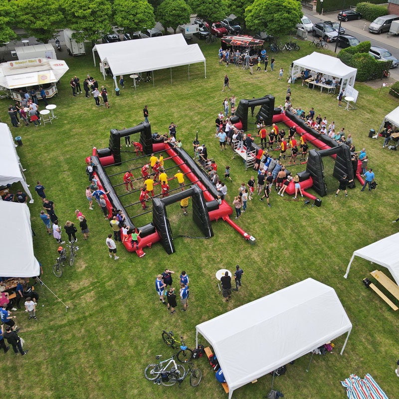 An Christ Himmelfahrt findet nach zwei Jahren Pause wieder das Männerkicker Turnier statt. Die Veranstaltung ist ein voller Erfolg. Die Kicker-Teams, die Besucher und auch die helfenden Hände haben ihren Spaß. Petrus ist uns hold, schenkt uns Sonne und zwischendurch ein Lüftchen.