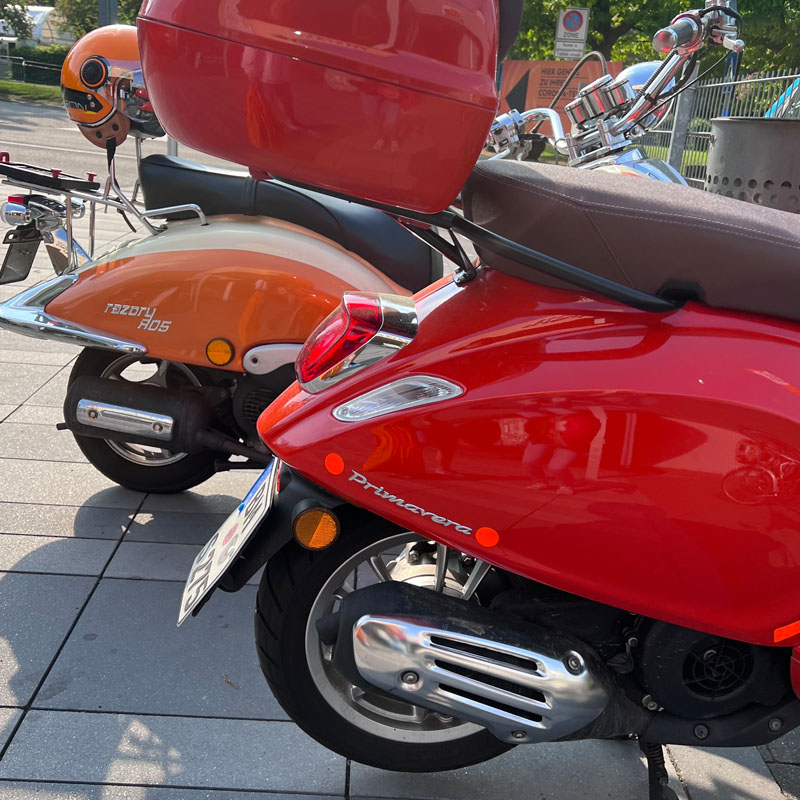 Anfang Mai ist das Wetter richtig schön. Die Sonne scheint, ich düse mit dem Fahrrad oder der Vespa durch unsere Stadt, mache Besorgungen, kaufe Lebensmittel ein.