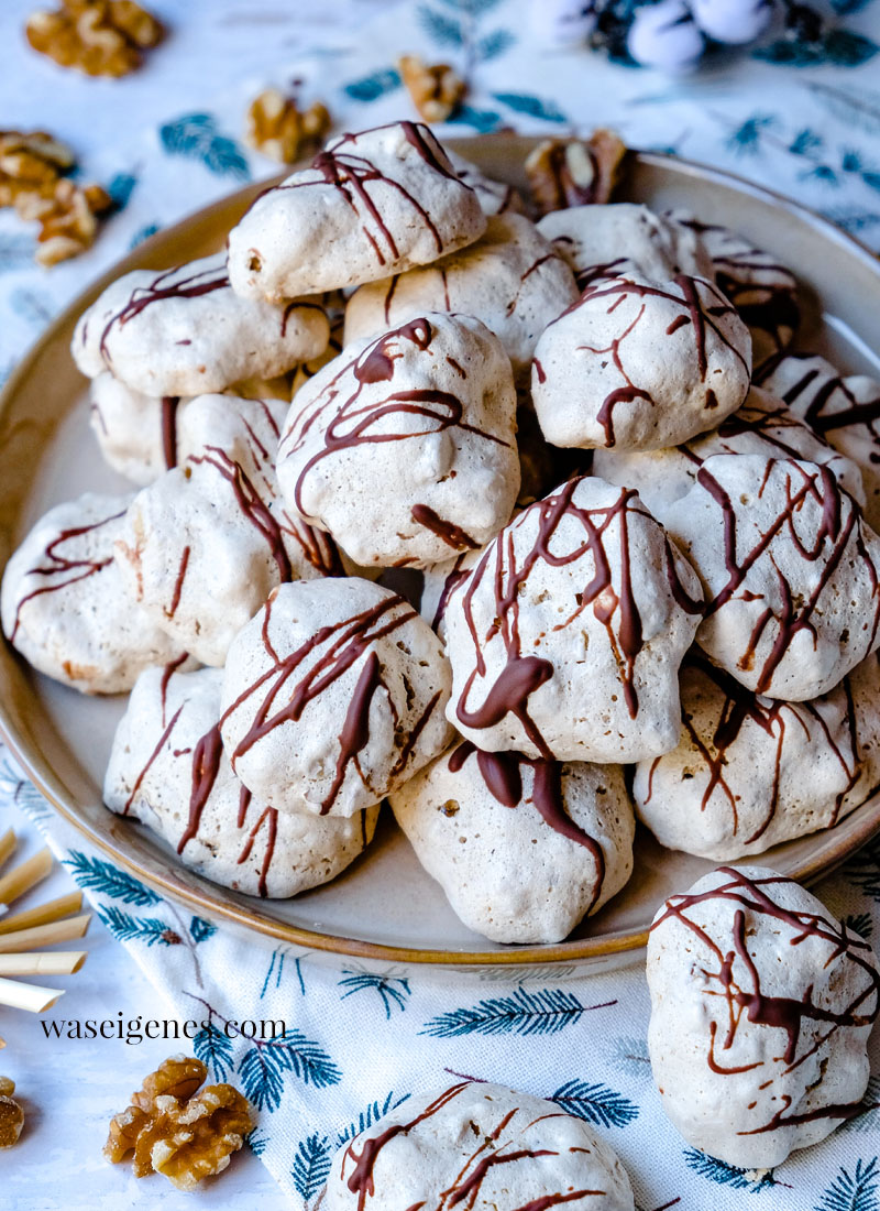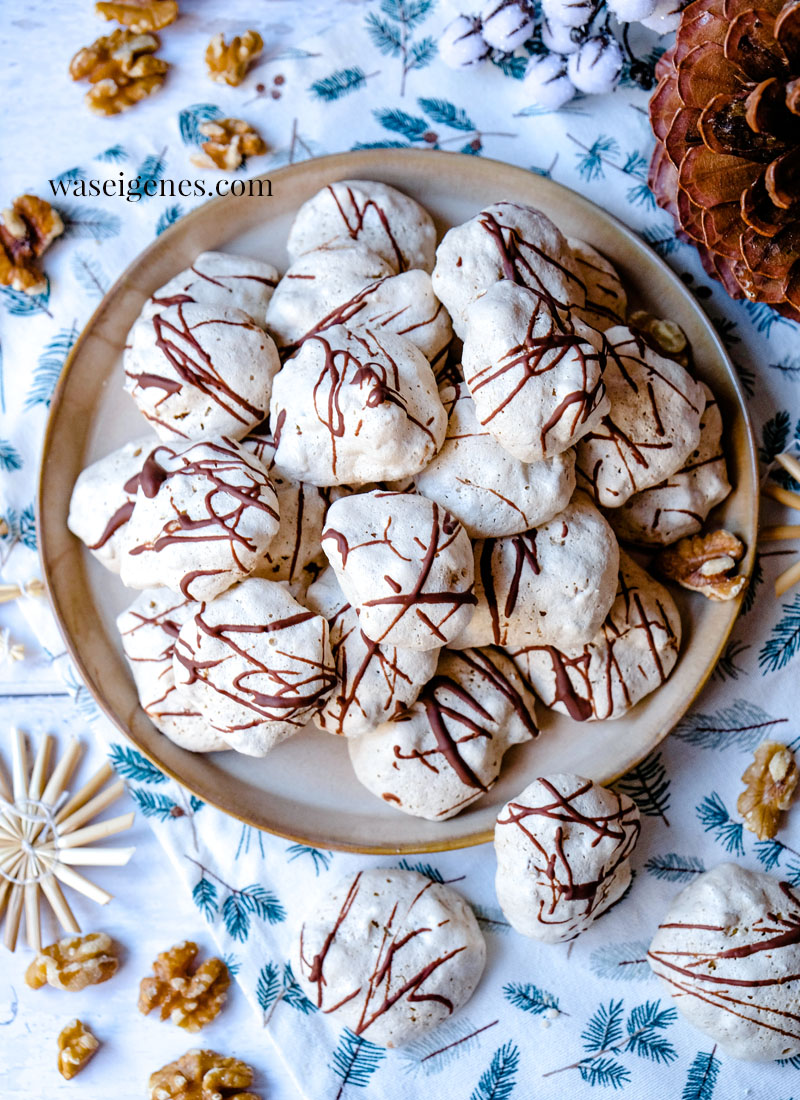 Ich mag solche Baiser-Plätzchen unglaublich gerne. Sie sind nicht nur lecker, sie sind auch wirklich ratz fatz gemixt und gebacken. So, wie z.B. die Kokosmakronen oder auch sehr lecker: die Dattel-Mandel-Busserl.
