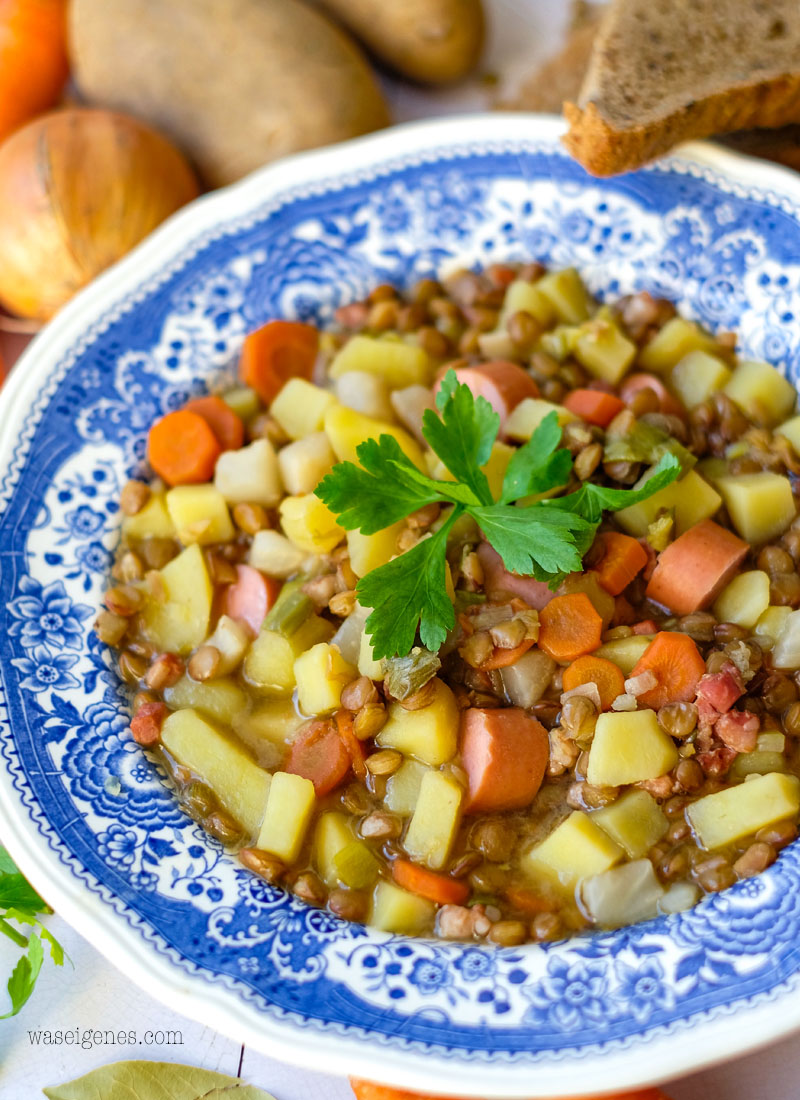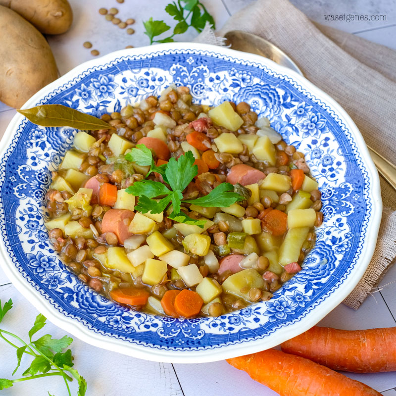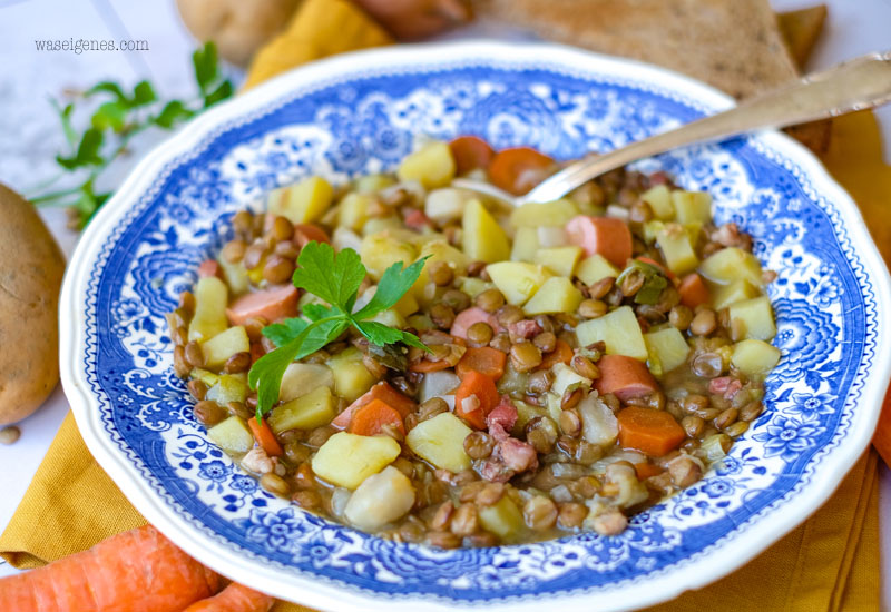 Ja, Linsen gehen immer, aber ersetze doch mal die Kartoffeln durch Spätzle, wie wir’s hier im Badischen, aber auch die Schwaben machen und gib nen Schuss roten Balsamico Essig dazu……noch viiiiel besser🥰.