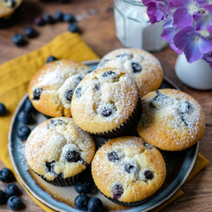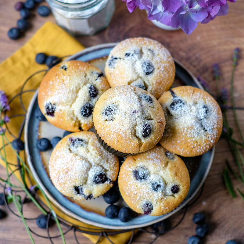 Liebe Backfreundinnen und Backfreunde, heute gibt’s hier ein sehr einfaches Rezept für saftig-fluffige Blaubeermuffins. Der klassische Muffinteig ist schnell gemixt – hierfür benötigt Ihr zwei Rührschüsseln, einmal für die trockenen und einmal für die feuchten Zutaten – danach werden die Blaubeeren untergehoben und nach 25 Minuten im Backofen sind die leckeren Muffins schon fertig.