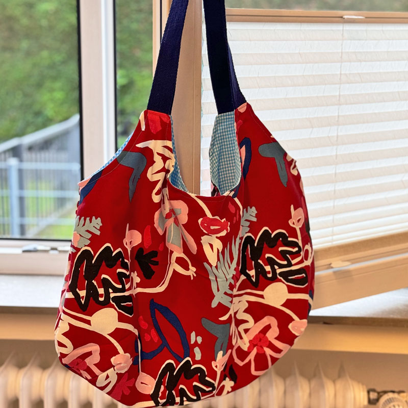 Weitere Teile liegen hier bereits zugeschnitten rum – ein Kleid, zwei T’Shirts, ein Sweatshirt. Ich bräuchte bitte nur eine Tüte Zeit. Und zwar eine große Tüte. Ach, nee! Keine Tüte. Ich nehme lieber einen Stoffbeutel.