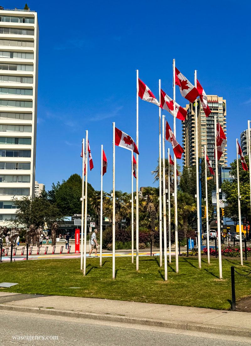 Gastown ist ein historischer Stadtteil im Zentrum von Vancouver. Das berühmteste Wahrzeichen ist diese pfeifende Steam Clock in der Waterstreet. Jede Stunde dampft und pfeift sie… was zur Folge hat, dass sich kurz vorher unglaublich viele Menschen um diese Uhr versammeln, alle mit Kameras oder Handys im Anschlag. Die Uhr pfeift und dampft, die Menschen knipsen und filmen,… und dann geht wieder jeder seines Weges. Ein lustiges Schauspiel.
