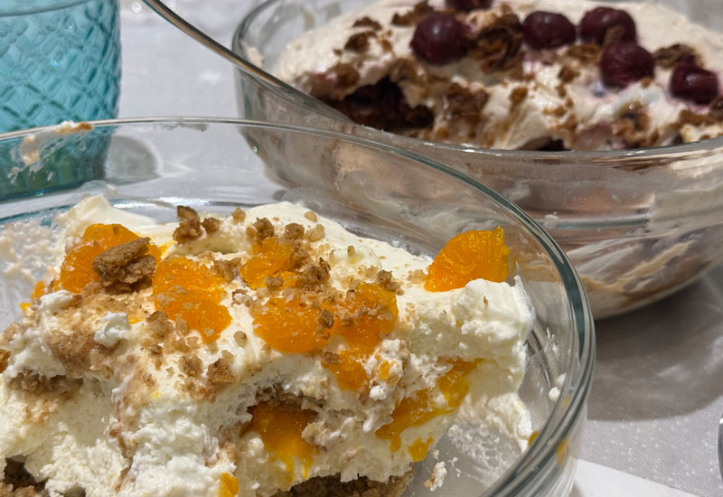 mitGEBRACHT ::: A propos Essen: Für das größere Familienessen am 1. Feiertag habe ich immer entweder den Job der Suppen-Köchin oder der Dessert-Macherin. Dieses Jahr wurde Dessert bestellt und dafür habe ich zwei Nachtische gemacht. Zum einen das Weihnachtliche Lebkuchen Dessert mit Schattenmorellen und das Käse-Sahne-Dessert mit Mandarinchen. Diesmal habe ich beide aber nicht in kleine Schälchen, sondern in jeweils einer großen Schale angerichtet.