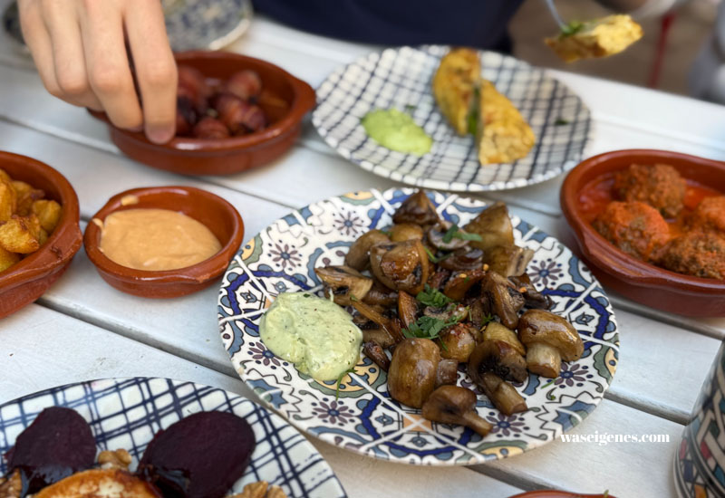 Dolle Hunger haben wir nicht, aber ein bisschen was zu futtern ist schon schön. Dafür eignen sich Tappas am besten. Alle probieren und kosten von (fast) allen Tellerchen.