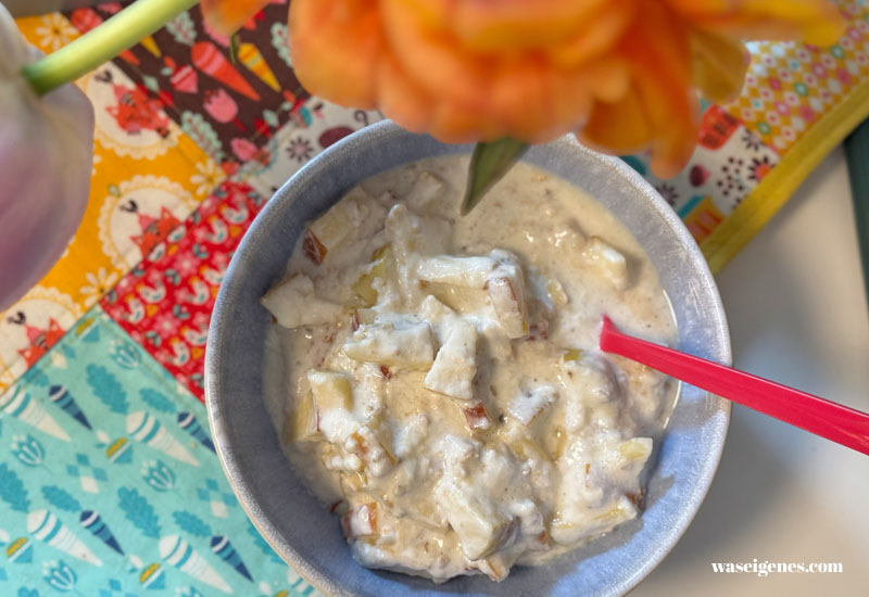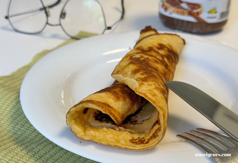Am Nachmittag bin ich wieder zu Hause, der Sohenmann hat Apfelpfannkuchen gebacken und ich habe Hunger. Für eine Rolle ist Zeit, dann müssen wir schon wieder los…