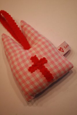 Mit aufgenähtem Filzkreuz und Filzlasche. Jaaaa, ich habe ENDLICH eine Zackenschere.