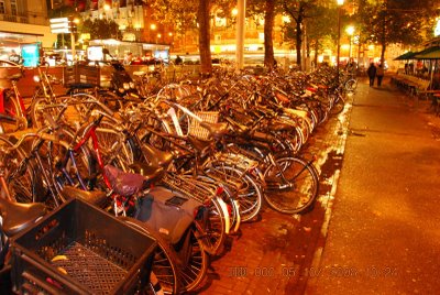 Amsterdam hat (nur) 750 000 Einwohner, auf die rund 400 000 Fahrräder kommen. Die Amsterdamer fahren Rad, so wie die Italiener Auto fahren. Rette sich, wer kann! Da wird nicht nach rechts und links geguckt, da wird einfach drauf los gefahren. Auf unserer ersten Tour am Freitagabend in die City habe ich mich das ein oder andere Mal schon in den Grachten liegen sehen, aber wenn man sich der Fahrweise anpasst, klappt’s ganz gut :-)
