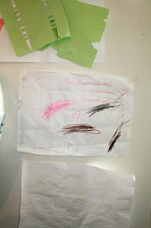 Küche. Am Kühlschrank. Selbstgemaltes von Töchterchen.