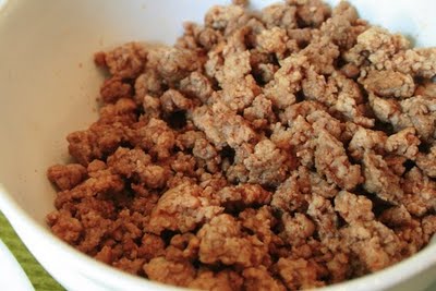 Gehacktes halb/halb in der Pfanne anbraten. Würzen mit Salz und Pfeffer und womit Euch sonst noch so ist und dann … Schüssel … Tisch. ;-)
