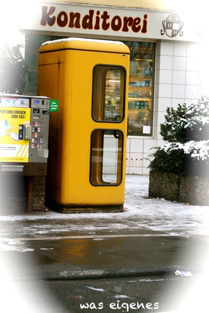 Wie oft stand ich in diesem gelben Ding und habe mich geärgert, dass mein Telefonkarte leer war. Telefonkarte! Das war schon total hipp im Vergleich zu den drei Groschen, die man sonst hineinwerfen musste.
