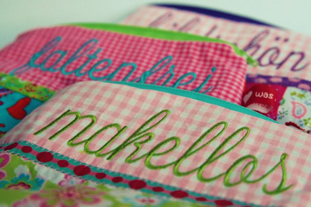 Nach den vielen London-Bildern heute endlich mal wieder etwas Genähtes. Neue Kosmetiktäschchen mit neuen Wörtern, für meinen Shop.