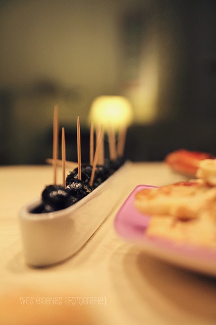 Oliven, köstliche Salate, herzhafte Mettbrötchen und leckeres Dessert.