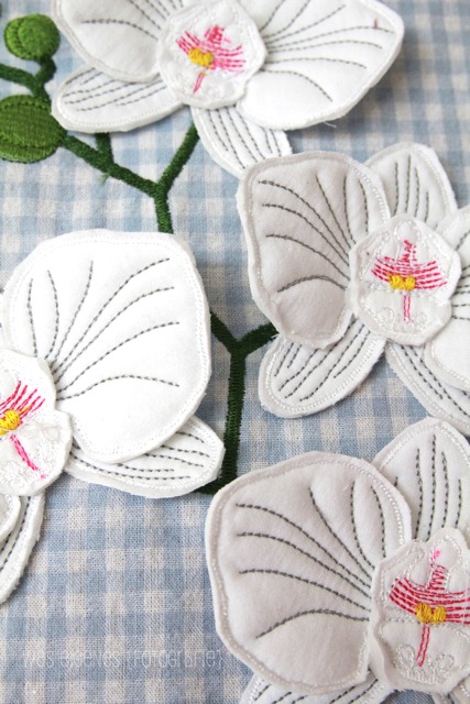 Ich kann von mir leider nicht behaupten, dass ich mit einem grünen Daumen gesegnet bin. Wie schön, dass es da die neue Stickdatei OrchIDEEN von der überaus talentierten Frau Maki gibt.