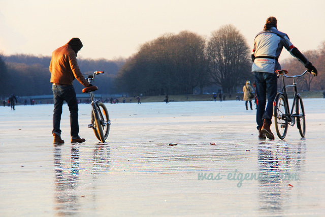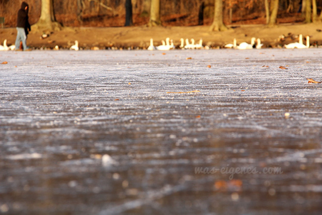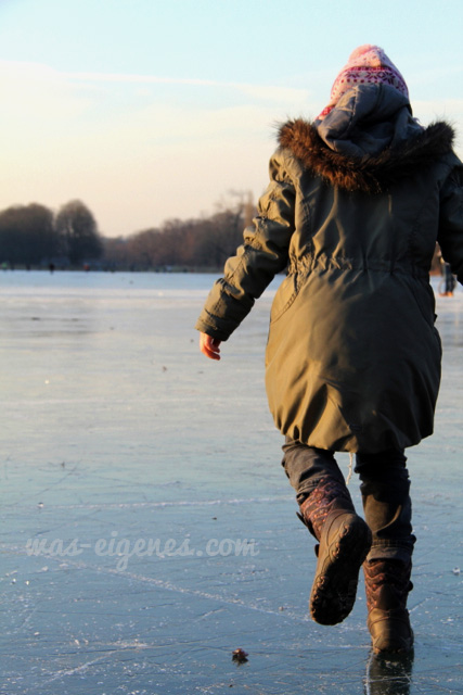 Ich bin eigentlich auch ein Schisser… aber, es waren sooo viele Leute auf dem zugefrorenen Weiher, das hab’ ich der Eisschicht einfach mal vertraut ;-)