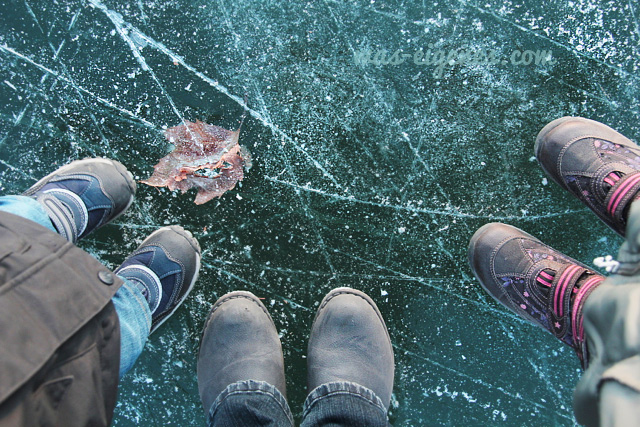 …die Farbe des Sees sieht auf einem Foto ja fast dunkelgrün aus und das Eis ist so glatt, genial!
