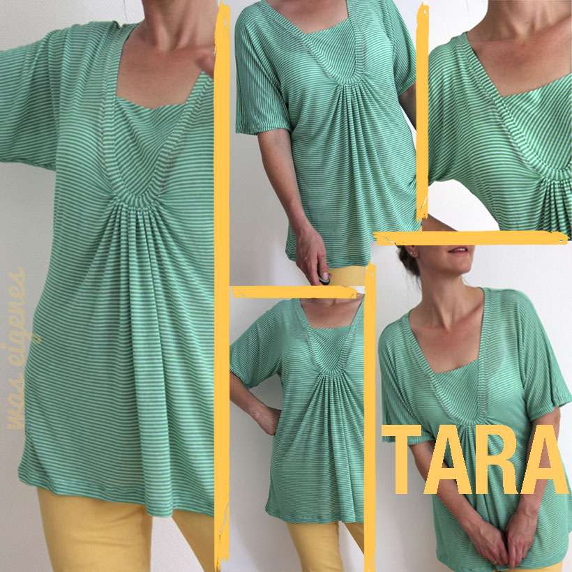 Aber, das Ergebnis überzeugt. Ich habe die Fledermaus-Ärmel-Variante genäht und finde sie richtig toll. Hier sammelt Frau Joiljou übrigens tolle Tara-Designbeispiele. Ich bin für solche Sammlungen ja immer sehr dankbar, weil man sich dort wunderbar neue Inspirationen holen kann.