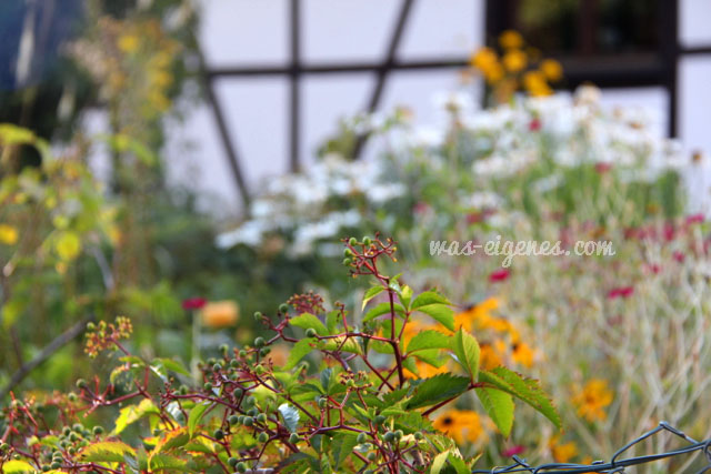 Was mich bei unseren Besuchen im Schwarzwald immer besonders erfreut, ist die Blumen- und Blütenpracht in den Gärten. Und dazwischen sieht man alte Badewannen, verrostete Fahrräder und Nippeskram.