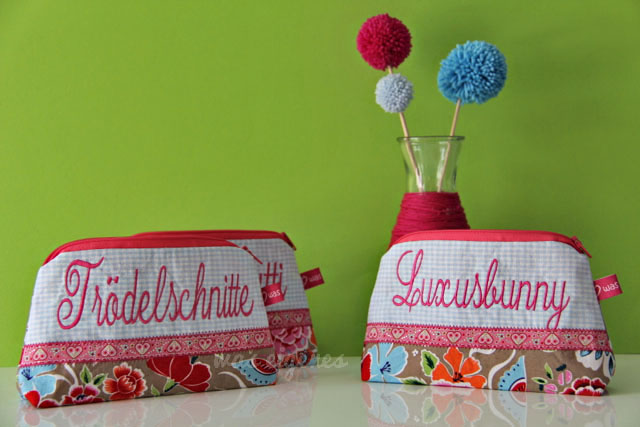 Als ich neulich eine Email mit dem Betreff “Bestellung individuell…” erhielt, musste ich doch sehr schmunzeln. Ein Grüppchen Kolleginnen (der Firmenname fällt natürlich unter meine stickende Schweigepflicht!) hatte sich zusammen getan und eine etwas andere Bestellung aufgegeben. Täschchen sollten es werden (natürlich!), aber nicht mit den gängigen, sondern mit ganz speziellen Wörtern: