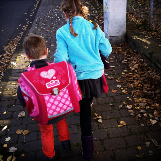 Süß, oder? Und wenn sie selbst in die Schule kommen, dann wollen sie das Ding nicht mehr tragen!