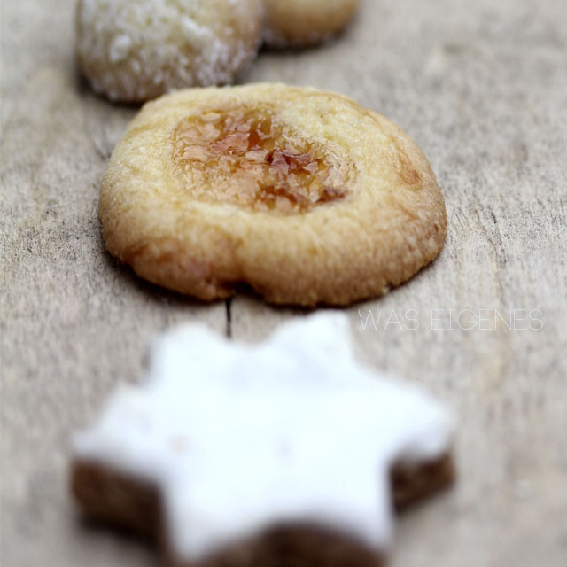 Zu den Engelsaugen kann ich Dir den Tip geben, die erwärmte Marmelade/Gelee erst nach dem Backen in die Vertiefungen zu füllen und trocknen zu lassen. Die sehen dann aus wie gemalt und sind noch saftiger.