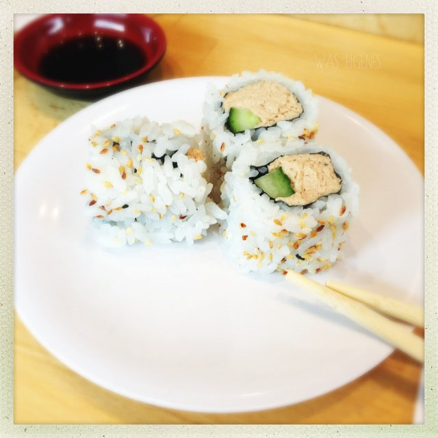 Anschliessend fahren wir Mädels ins EKZ Besorgungen machen und weil das Mittagessen bei mir heute ausgefallen ist, kehren wir in das Restaurant mit dem Laufband ein. Premiere für`s Kind. Und sie fand es lecker. Und ich sowieso. Das machen wir jetzt öfter!