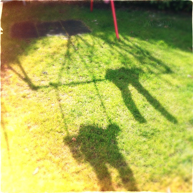 Kaum sind wir zu Hause, stürmen die beiden in den Garten und auf die Schaukel. Ich stürme mit einer Tasse Kaffee hinterher und geniesse den Sonnenschein. Mensch, was habe ich den vermisst!