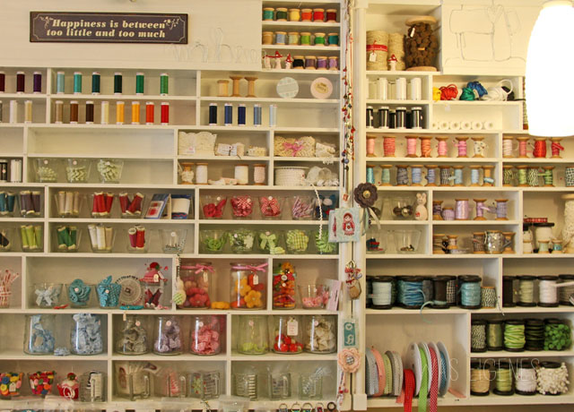 Ich hab an Märkten angefangen zu verkaufen und bin dann nach und nach zu einem Webshop gekommen, den ich mir – anfangs mit Joomla oder Jimdo oder “von Hand” selbst zusammen gebastelt hab. Von genähtem bin ich inzwischen zur Materialverkäuferin geworden, habe einen grossen Onlineshop – und – inzwischen auch einen Laden (allerdings nicht mit dem üblichen Schaufenster, es ist nämlich eine alte Schreinerwerkstatt).