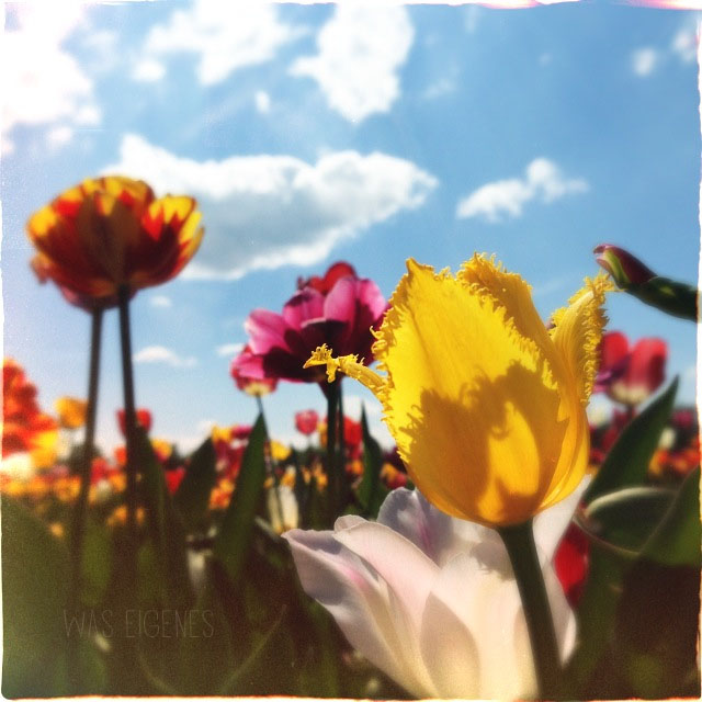 Hattet Ihr am Wochenende auch so ein geniales Wetterchen? Wir haben die Sonne und den strahlend blauen Himmel in vollen Zügen genossen. Haben gegrillt (dazu gab es den unglaublich leckeren Mülli-Salat!), im Garten gesessen, standen am Spielfeld und haben Töchterchens Mannschaft angefeuert,… und dann sind wir noch mit dem Rad zum nahe gelegenen Tulpenfeld gefahren.