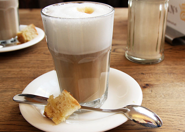 Nicht so toll fanden wir allerdings, dass ein kleines Schälchen extra-Nutella EUR 1,20 kostet. Hmpf. Aber lecker war es und das selbstgebackene Brot wirklich köstlich. Im vorderen Bereich gibt es eine klassische Bäckerei-Theke, wo man all die vielen Brot- und Gebäcksorten kaufen kann, die man im hinteren Bereich am Tisch mit Obstsalat, Latte Macchiato und Rührei bestellen kann.