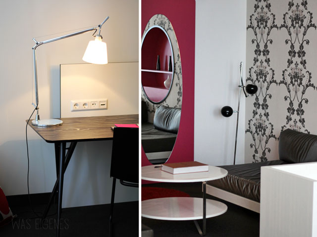 Das 25hours Number One Hotel ist komplett anders, als das Schwesterhotel Hafencity, von dem ich damals auch so begeistert war {wer nochmal schauen und lesen mag -> klick}. Es ist im Retrostil eingerichtet, groß gemusterte Tapeten, viel Pink und Orange, Plastiklampen, Sitzsäcke, Sichtbeton. Wir haben uns dort richtig wohl gefühlt, nicht zuletzt durch die freundlichen Mädels am Empfang, die uns mit Rat und Tat zur Seite standen (da wurde mal schnell ein Stadtplan über google maps ausgedruckt, ein Tisch in einem benachbarten Hotelrestaurant reserviert, der Fahrplan für die U-Bahn zu den Landungsbrücken ausgehändigt. Nicht, dass dies ein besonderer Service für ein Hotel wäre, nein, aber die Art und Weise, die hat mir super gut gefallen).