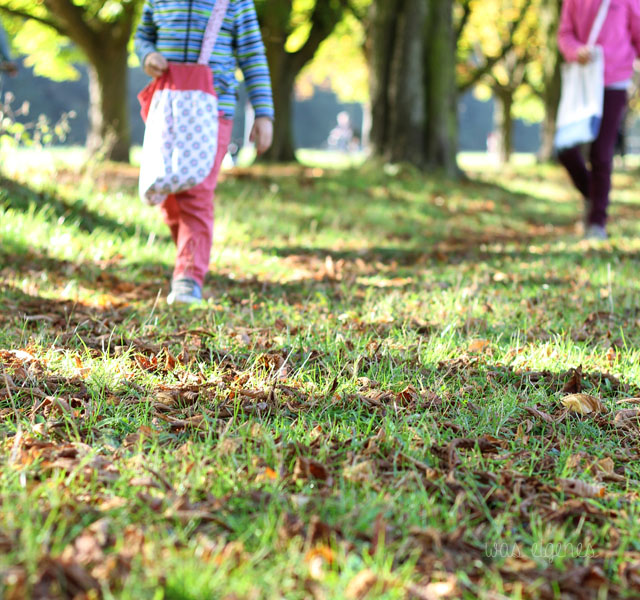 Ach ja, ich liebe diese glänzend braunen Kastanien!! Wir waren heute Morgen auch grad schon unterwegs und haben eine ganze Tasche voll gesammelt…ich bin da mindestens so begeistert wie die Kinder :-) Leider fehlte bei uns auch die Sonne, dafür hatten wir den Park und die Kastanienbäume ganz für uns.