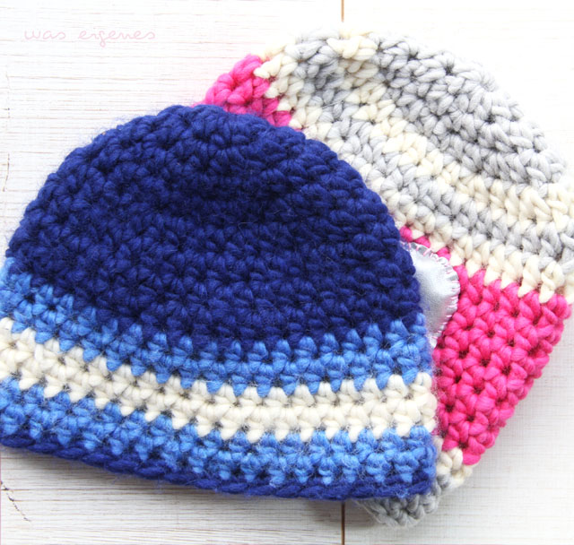 tolle Mützen hast du gehäkelt, gefallen mir beide. Ich finde häkeln im Winter etwas entspannter als Nähen. Das kann ich nämlich auf dem Sofa vor dem warmen Ofen machen, zum Nähen muss ich in den Keller (und erstmal durchs kalte Treppenhaus brrrr)