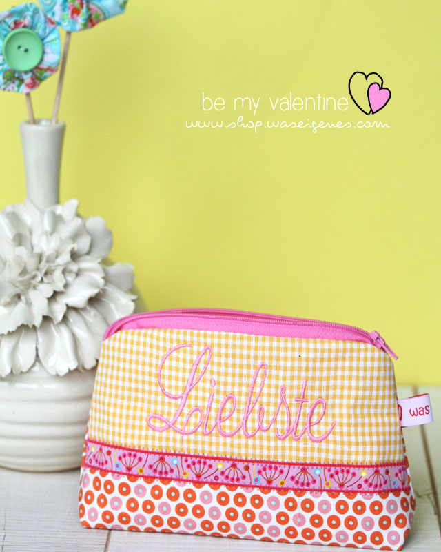 Die Schminktäschchen gibt es ab sofort im Shop – so lange der Vorrat reicht! Schenkt Ihr Euren Frauen (falls hier Männer mitlesen?), Euren Männern oder Eurer Freundin eine Aufmerksamkeit zum Valentinstag, schreibt ihr Kärtchen und bastelt Herzen, oder ignoriert Ihr diesen Tag?