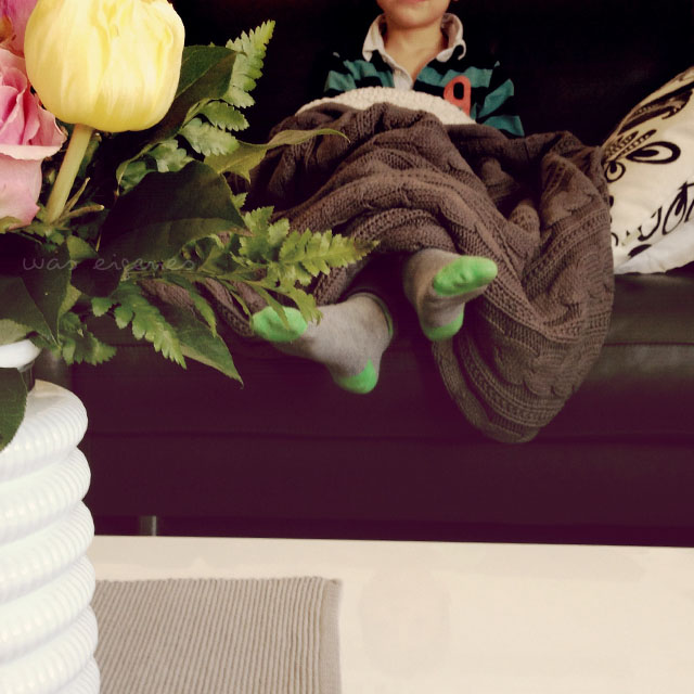 Ich bekomme deswegen meine Arbeit heute überhaupt nicht erledigt. Der Computer bleibt weitestgehend, die Nähmaschine bleibt komplett aus. Statt dessen spielen wir Monsterfalle, Einkaufen und das Zahlenspiel.