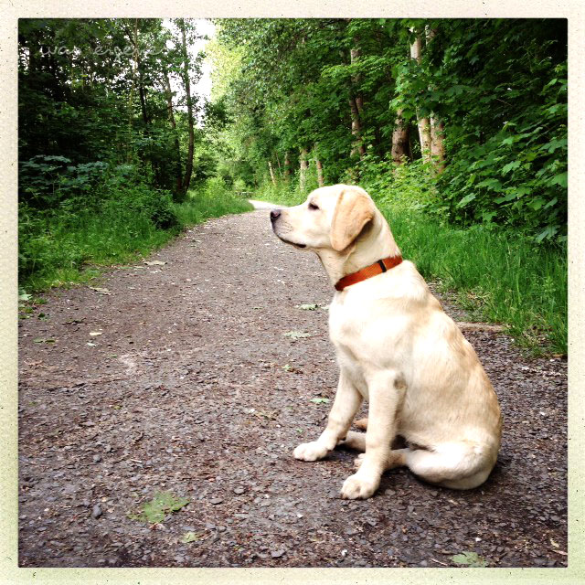Ein Küsschen zur Verabschiedung mit dem Wunsch viel Freude beim Besuch der Polizei zu haben und dem Versprechen, dass ich Mollie zum Abholen wieder mitnehme, mache ich mich mit dem Hundebaby auf in den Wald. Wir treffen eine Menge anderer Hunde, was sie großartig findet. Keiner ist ihr zu groß, zu schwer, zu klein, zu wild, sie wedelt mit dem Schwanz und springt auf und ab. #mollienator Zwischendurch sitzt sie ganz ruhig da und beobachtet… was auch immer.