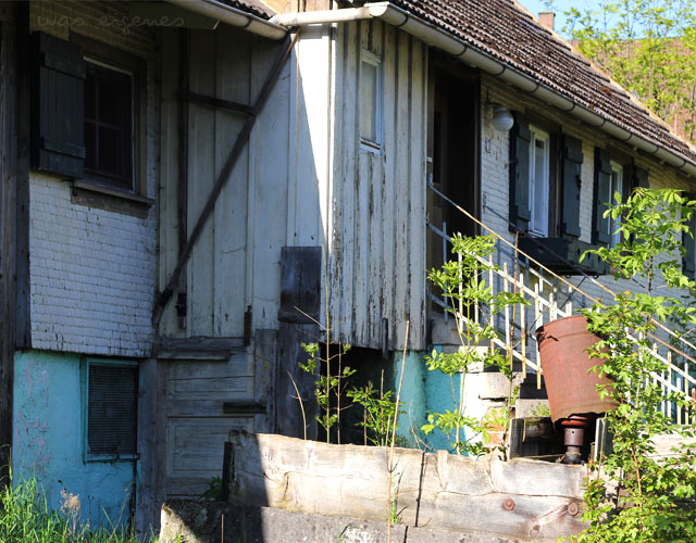 Ich mag dieses alte Dorf, mag die verwinkelten Sträßchen, die bunten Häuser, altes Fachwerk, die kleinen Bauerngärten, in denen Salat und Radieschen wachsen und mag besonders gerne den ganzen Schnickschnack und Nippeskram, den man zwischen wilden Blumen und auf der Fensterbank so sieht. Geknipst habe ich alle Bilder mit meinem 50 mm Canon Objektiv. Ich wollte mit möglichst leichtem Gepäck reisen und habe deswegen mein liebstes Allrounder Objektiv (18-200 mm) zu Hause gelassen. Vor Ort habe ich es, ehrlich gesagt, bereut. Das Kleine und ich, wir werden nicht so richtig warm. Ich glaube, ich bin eher eine Zoom-Hobby-Fotografin. Ich finde es wirklich schwierig, mit dem Ding den richtigen Motivausschnitt zu finden. Ausserdem zoomt es sich bekloppt, bevor es richtig scharf stellt. Bine = extrem ungeduldig = schnell genervt, wenn es nicht so läuft, wie ich es mir vorstelle.