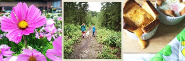 Lieber Sommer, es wäre nett, wenn Du Dich langsam mal wieder blicken lassen würdest! // Am gestrigen Sonntag haben wir nur gegessen, gegammelt, gelesen, gespielt und waren mit Mollie im Wald unterwegs. Leider mit Regenjacke. // Zum Frühstück gab es eine spontane Eigenkreation: Auflaufförmchen ausbuttern, Toastbrot hineinlegen/ stecken, ein Ei aufschlagen und auf das Toastbrot gießen oder das Ei vorher in einer Schüssel aufschlagen, würzen und dann in die Form gießen. Die Förmchen für ca 15-20 Minuten bei 160 Grad in den Ofen stellen. Das schmeckt lecker und ist eine schöner Alternative zum Frühstücksei oder Rührei am Wochenende!
