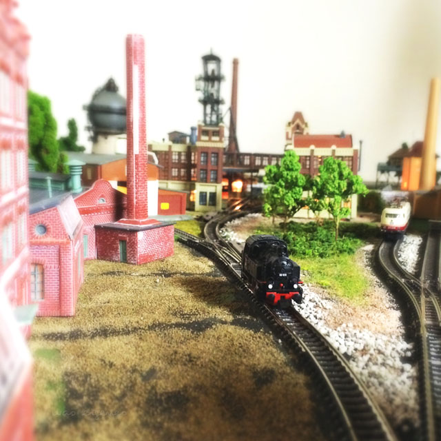 Und natürlich müssen wir auch Opas Eisenbahn bestaunen und dabei immer wieder das Deckenlicht aus und die kleinen Lichter anmachen.