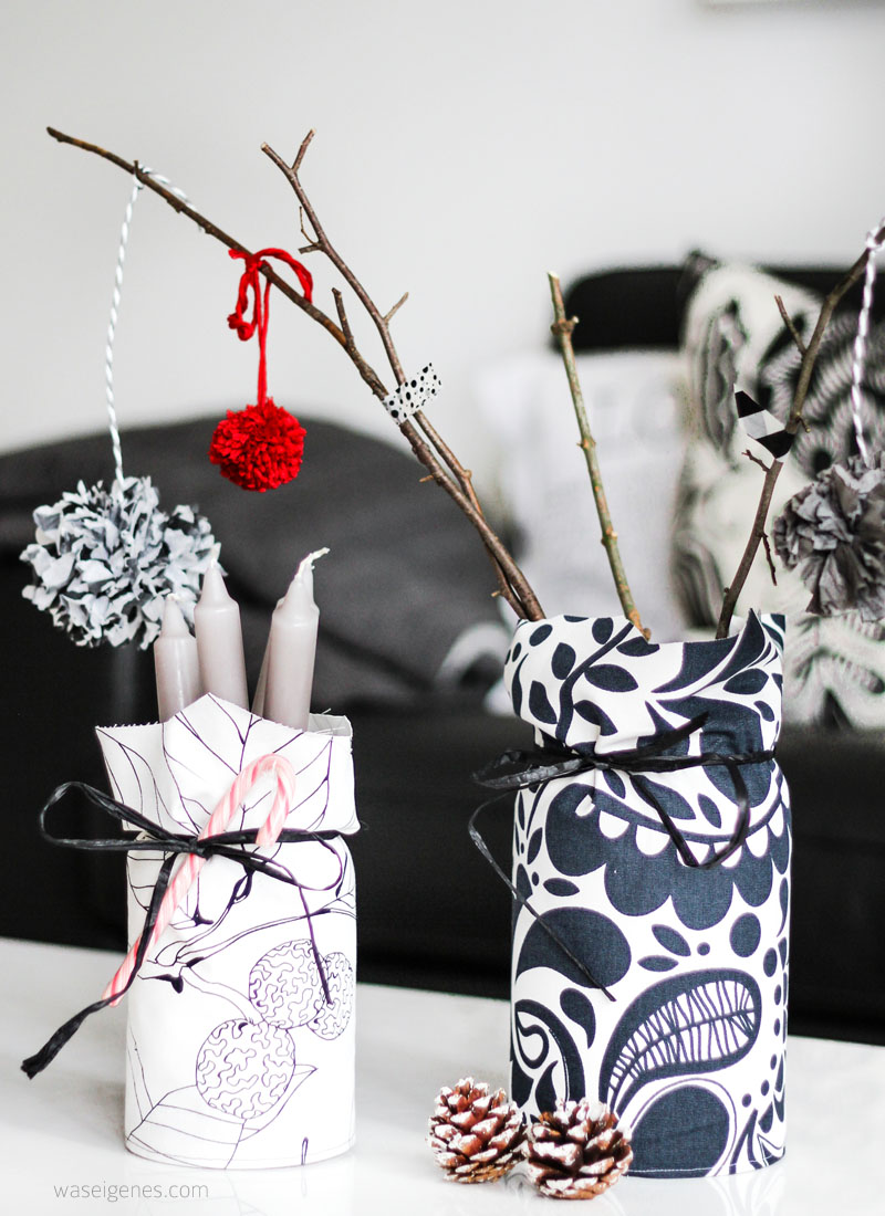 Schritt für Schritt Bilder bedarf es bei dieser Anleitung nicht, denn Vasenhussen nähen sich fast von alleine ;-) Die Aufgabe bestand damals darin, das Material komplett bei Ikea zu kaufen. Ihr benötigt: 2 Glasvasen (z.B. “Cylinder”), Stoffe oder Stoffreste, Strohband, Seidenpapier, Basteldraht und Kordel für die Pompoms, Washitape, Kerzen und anderen Dekonippes.