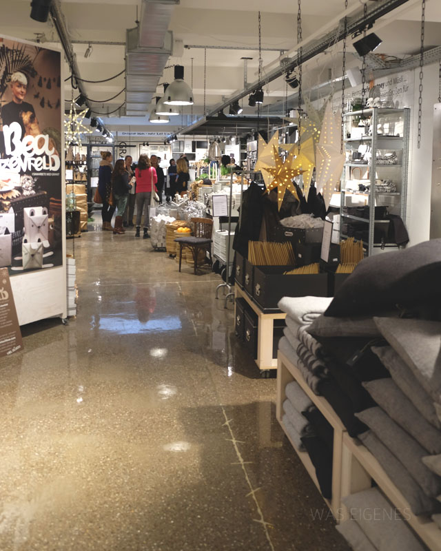 Farben findet man keine bei Granit. Schwarz, weiss, grau und Erdtöne ziehen sich durch das komplette Sortiment. Alles wirkt sehr stimmig und irgendwie beruhigend. Ein kleines Tablett und eine Kerze, die Ihr hier vielleicht schon gesehen habt, mussten mit nach Hause. Auf den Bildern seht Ihr noch ein wenig Weihnachtsdeko, das liegt daran, dass Ricarda und ich schon Anfang Dezember dort waren.