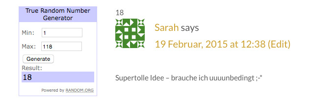 Gewonnen hat: Sarah von Mein Mädchenkram