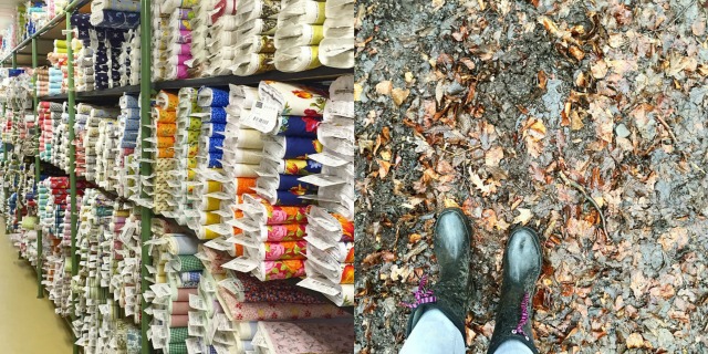 Schöne Stoffe, so weit das Auge reicht! Auf der Swafing Hausmesse kann ich mich kaum entscheiden, welche Ballen ich mit nach Hause nehmen soll. / Mistwetter!