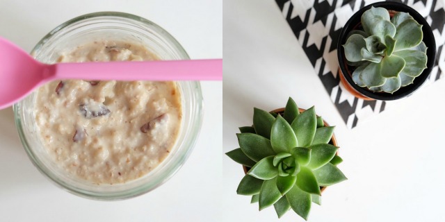 Homemade Bircher Müsli. Schmeckt köstlich. / Sukkulenten auf unserem Wohnzimmertisch. Bisher sind sie noch nicht eingegangen! Genau die richtigen Pflanzen für mich und meinen weniger grünen Daumen.