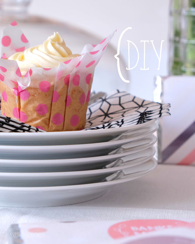 Die Cupcake Förmchen habe ich übrigens selber hergestellt. Dafür habe ich aus Seidenpapier, welches ich hier schon für die DIY PomPoms→ genutzt hatte, 16×16 cm große Stücke ausgeschnitten.